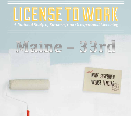 Maine’s ranking is included in “License to Work: A National Study of Burdens from Occupational Licensing,” the first report to measure how burdensome occupational licensing laws are for lower-income workers and aspiring entrepreneurs. (http://www.ij.org/