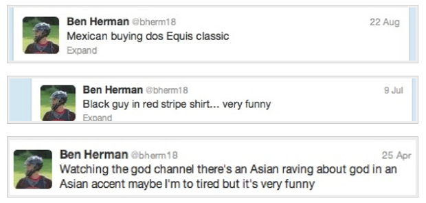 You’d think that since the Angus King Senate campaign is heavily invested in social media – with 38,747 “likes” on Facebook and 1,675 followers on Twitter – they would have asked the candidate’s college-age son, Ben Herman, to stop making racist, homophobic, ageist and inane Tweets. Or at least get him to change his privacy settings so the whole world wouldn’t have access to his views on politics, history, old people and vaginas.