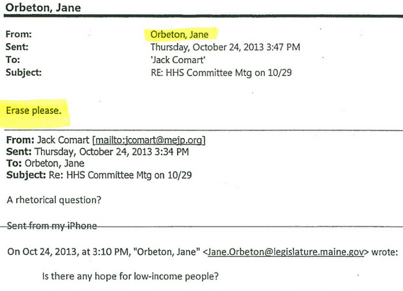 In one email, Orbeton asks, possibly illegally, for the deletion of an email. In another instance, Orbeton asks why MEJP was not preparing litigation against the Department of Health and Human Services for problems with the Non-Emergency Medicaid Transportation program.