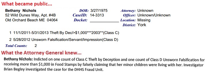 Maine’s major media outlets were never informed about the nature of the indictments referred to in the court report. Even the Portland Press Herald, a liberal paper that nonetheless typically gives coverage to such things, published the list of indictments online without noticing the welfare fraud.