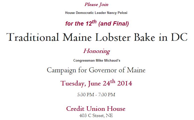 WASHINGTON, D.C. – U.S. House Minority Leader Nancy Pelosi (D-Calif.) will headline Democratic Rep. Michael Michaud’s 12th — and final — lobster bake fundraiser on Tuesday.