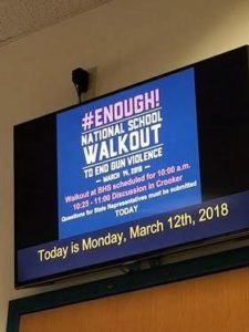 Perhaps most upsetting, we know already that the walkout will disrupt classes for longer than 17 minutes. An image making its rounds on social media Monday afternoon depicted an announcement screen at Brunswick High School that featured the same promotional graphic for the walkout created by the Women’s March. The announcement states that a discussion will take place in the school theater for 35 minutes following the walkout.