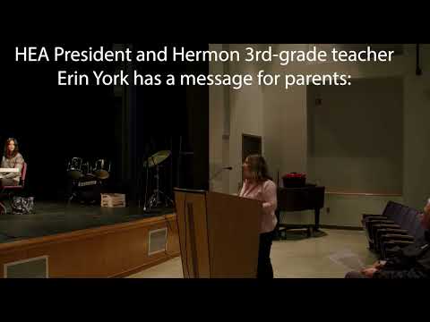 “To the citizens of Hermon, the fact is, we work in a public district, our schools are for every child, educators here know what’s best for our students, we have the training, we have the knowledge, we have the experience, please trust us,” said Hermon Education Association President Erin York in an October 3 public meeting.