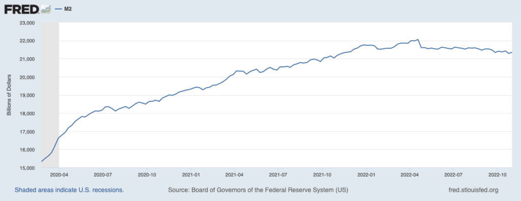 Spending on programs intended to mitigate the harm of the pandemic skyrocketed the federal debt and increased the M2 money supply from $15.3 trillion in Feb. 2020 to an all time high of more than $22 trillion in April 2022.
