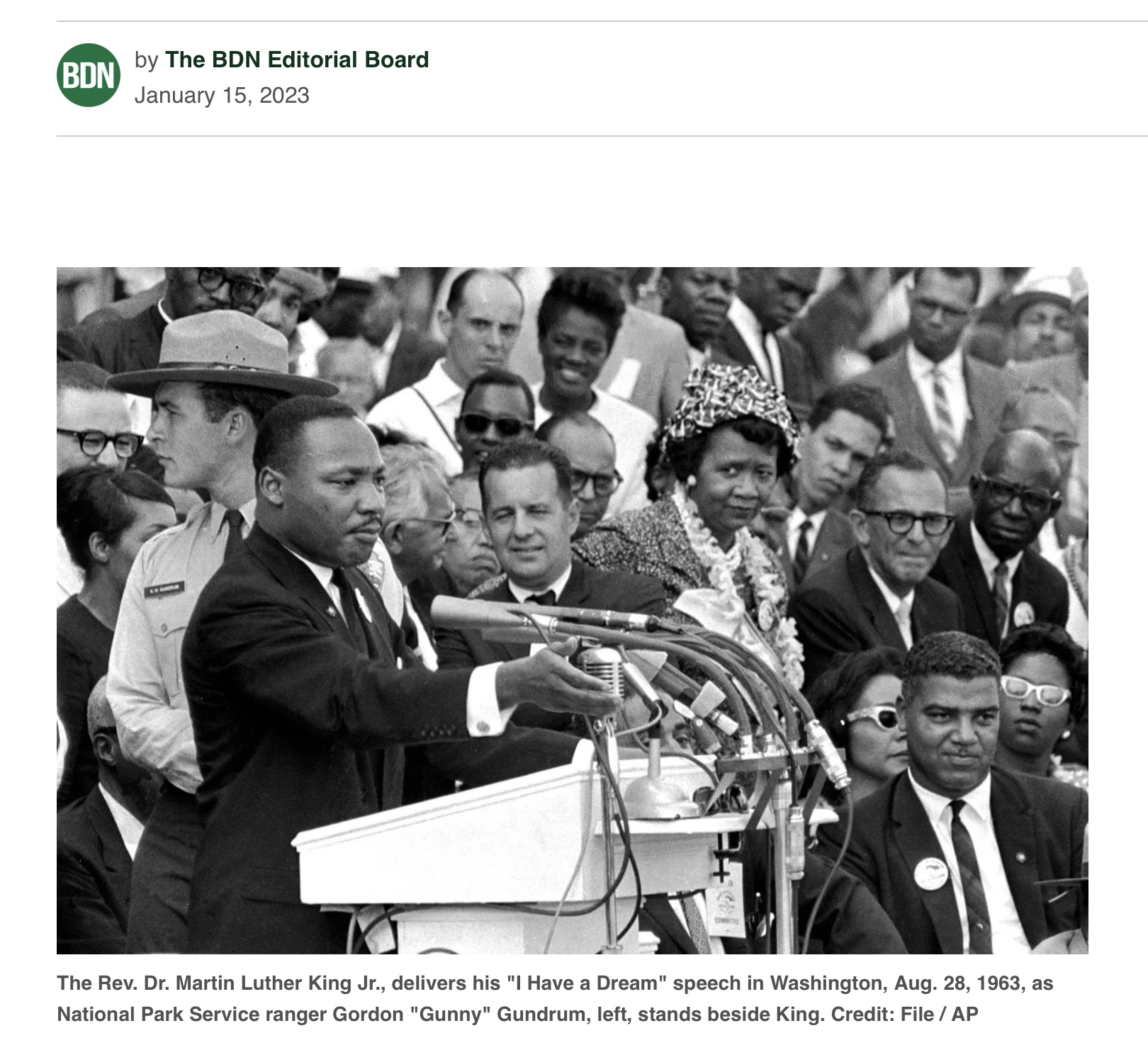 As if the pile on weren’t brutal enough, Kruse went back into the archives and found the BDN editorial from the day King delivered his famous speech. It hasn’t aged well.