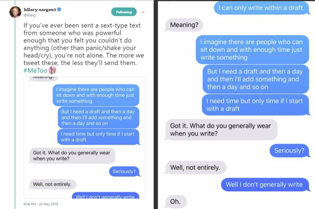According to screenshots in tweets Sargent published, but has since removed, Sargent reached out asking for writerly advice and was met with an inquiry from McGrory about she was wearing.