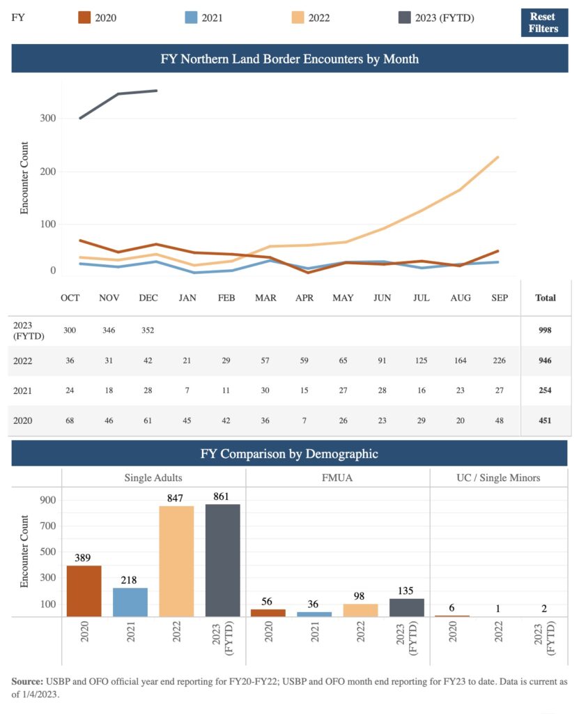 Although attempted illegal crossings of the northern border are increasing, those numbers are dwarfed by the surge in illegal immigration over the southern border with Mexico.