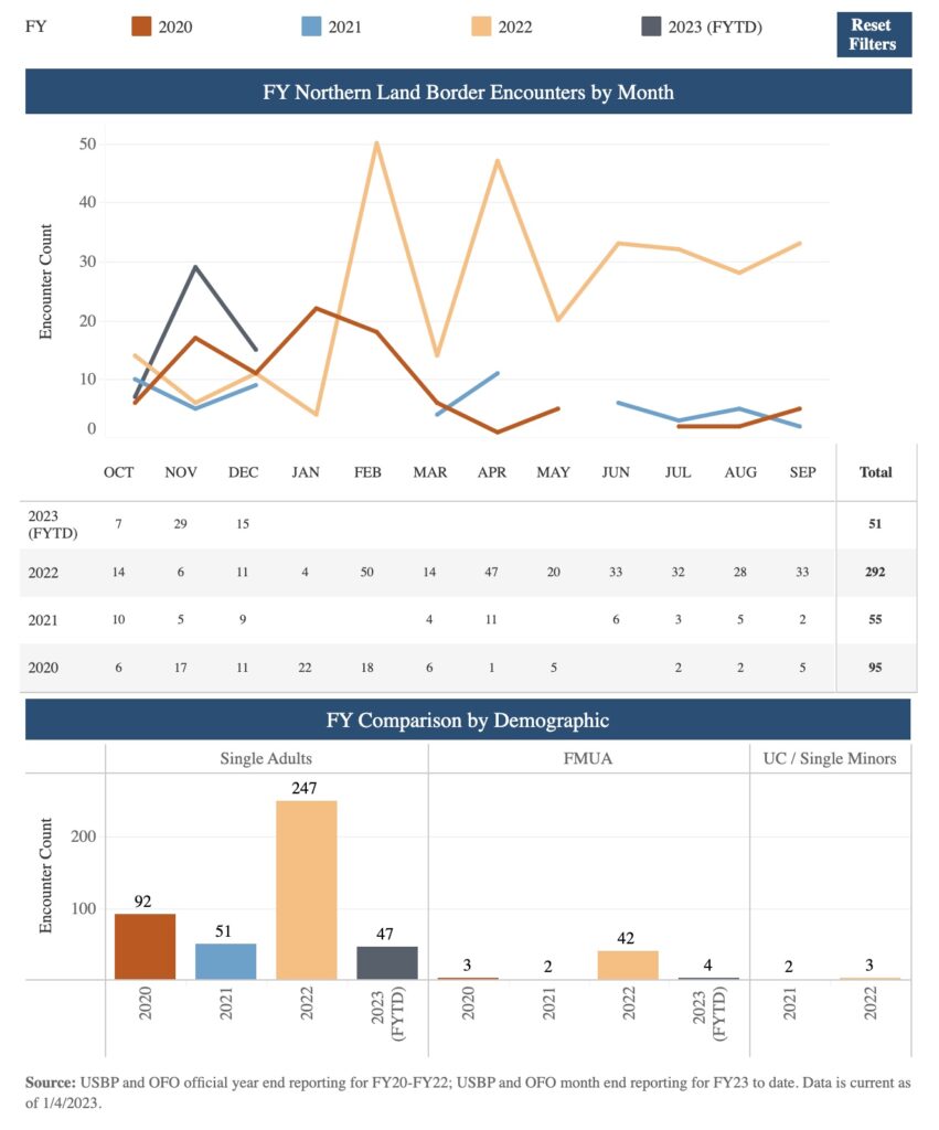 In fiscal year 2022, 847 single adults were apprehended by CPB attempting to cross into Vermont or New Hampshire illegally.