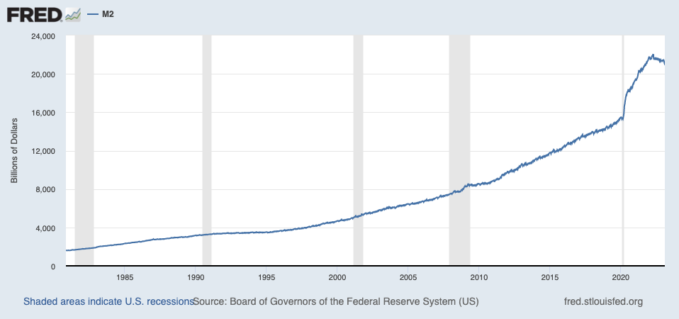 As Sen. Libby suggests, increases in the money supply plays a dominant role in inflation. Consider that the recent period of high inflation just so happens to coincide with unprecedented increases in the money supply.