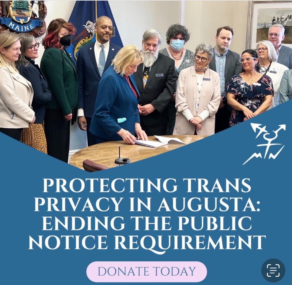 According to its website, MaineTransNet’s legislative advocacy this year has include support for changing the word “Woodsman” to “Woodsperson” in state programs and a bill that would require schools to offer free menstrual products in boys restrooms.