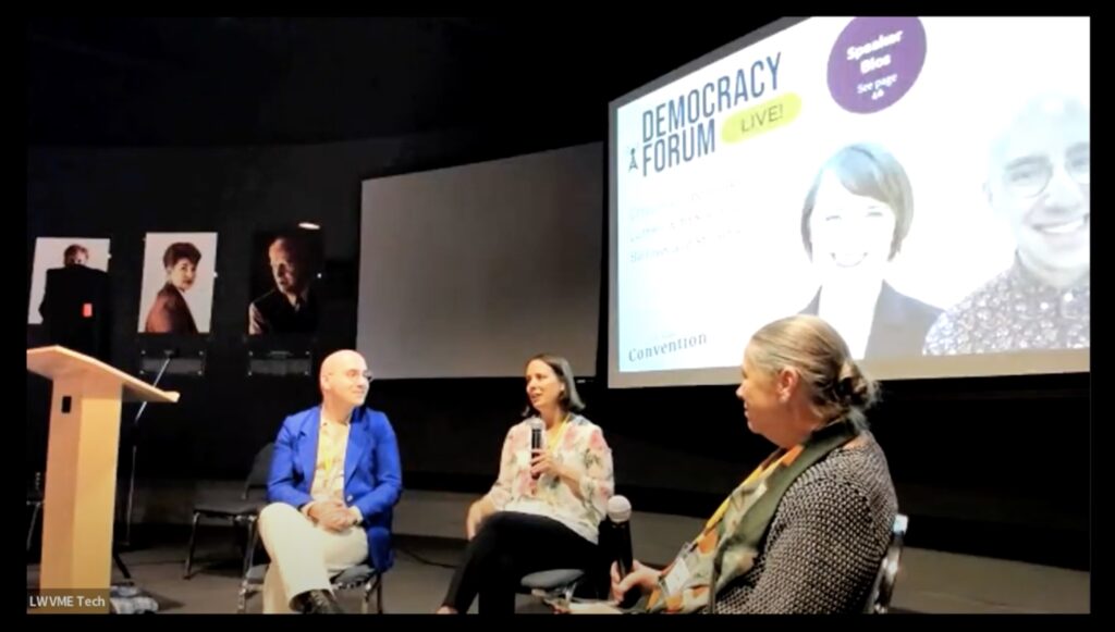 The topic of LWV’s 2023 Biennial Convention was to discuss threats to democracy, and Bellows used this story to give an example of actions that undermine the democratic election process.