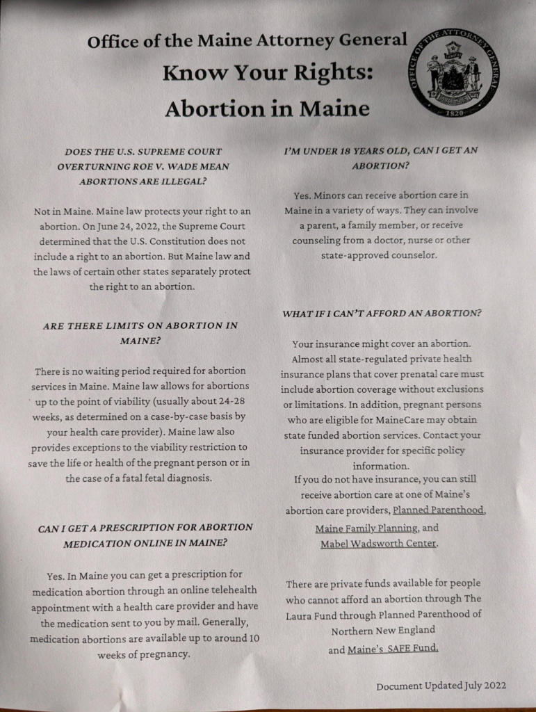 A copy of the 2022 AGO abortion rights flyer obtained by the Maine Wire can be seen below: