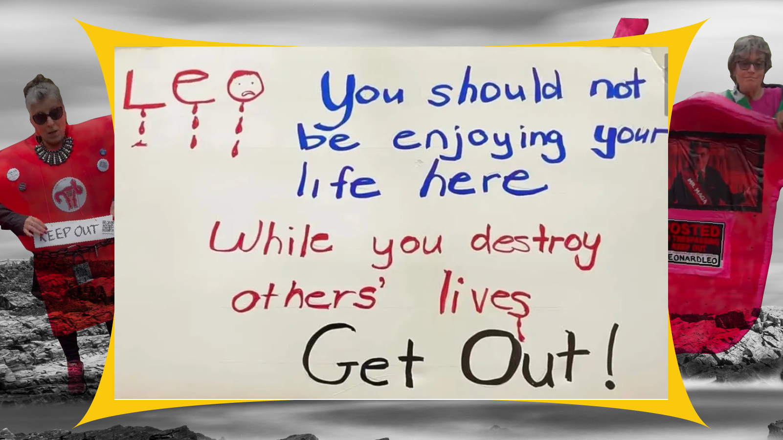 That means there have been nasty, over-the-top protests at his house in Northeast Harbor. In one case, a person was arrested by police after harassing Leo, his wife, and their 11-year-old daughter – and, of course, the harasser is now suing the police for doing their job.