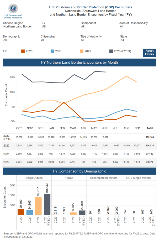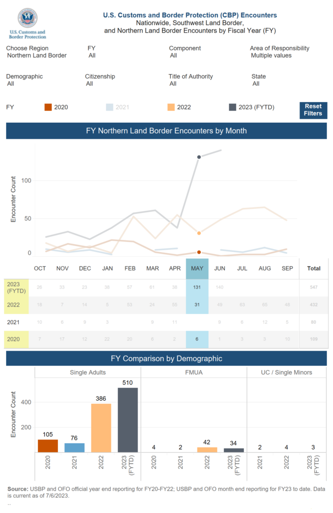 According to federal statistics, border agents encountered 16,832 individuals attempting to cross the northern border illegally in May — the highest number of encounters in any month since 2020.