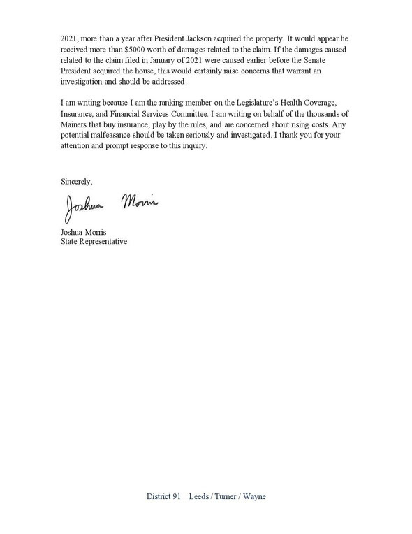 See Rep. Morris’ full letter to the Acting Superintendent of the Maine Bureau of Insurance below: