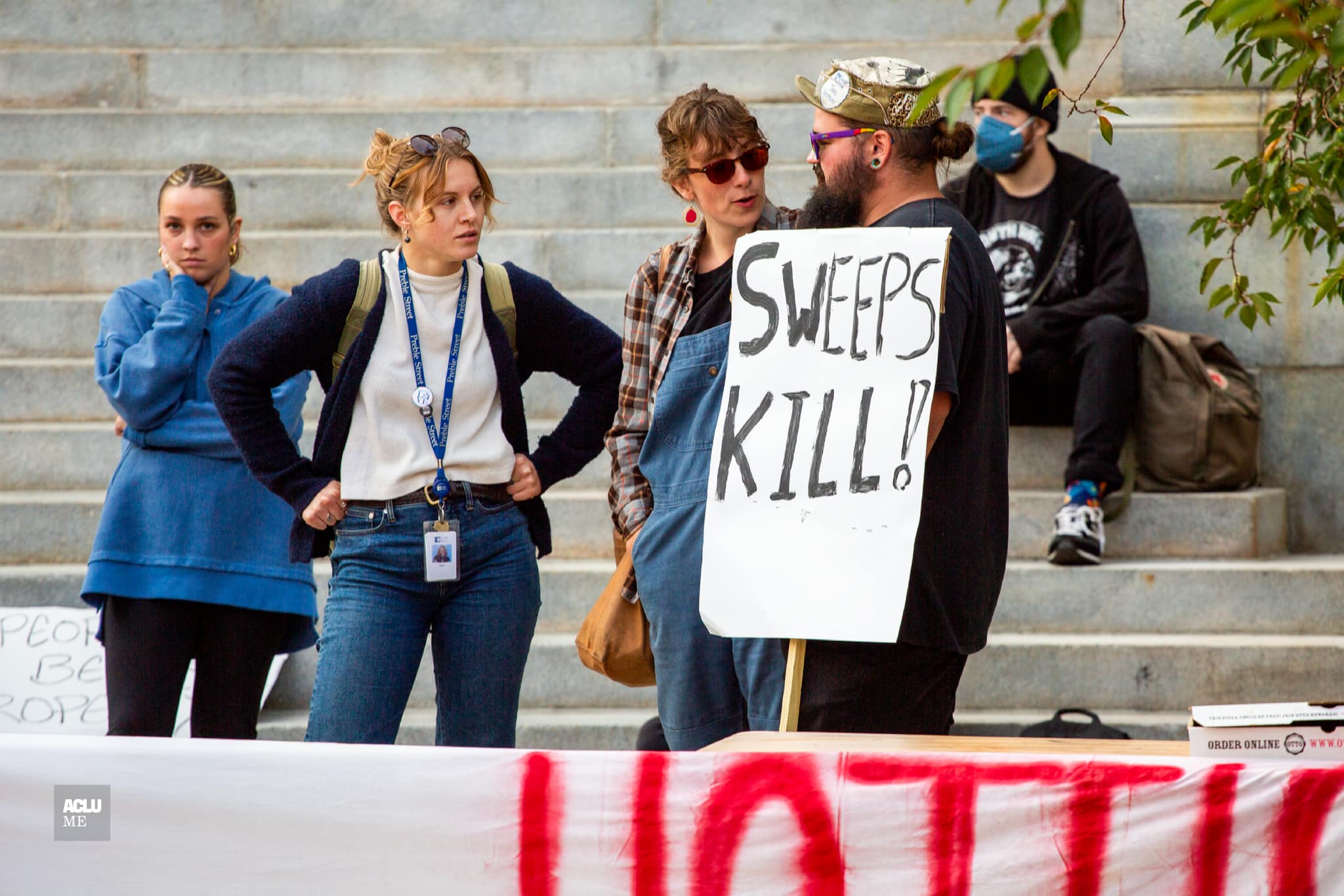 The ACLU of Maine joined the Communist Party for Socialism and Liberation and other advocacy groups Tuesday to urge the Portland City Council to end its policy of encampment sweeps and to testify against their proposed expansion of the city’s Homeless Services Center (HSC).