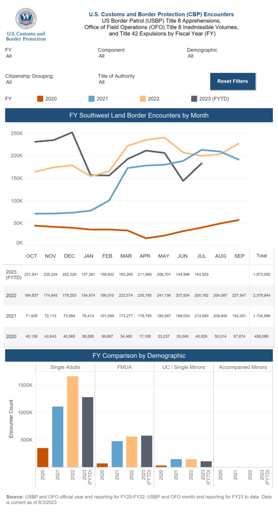According to data from the U.S. Department of Homeland Security, law enforcement encountered more than 180,000 migrants attempting to enter the country illegally in July.