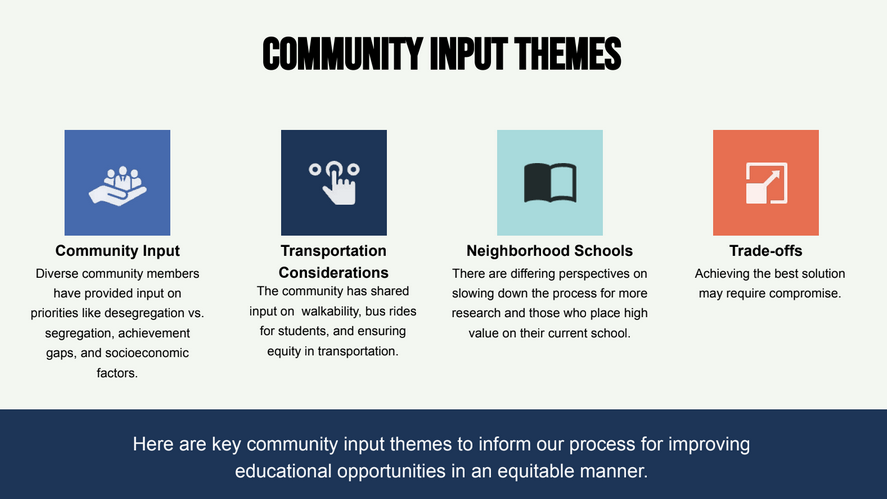 Some of the possible changes discussed in their presentation included altering attendance zoning, switching up school configurations, introducing magnet programming, and implementing a form of citywide open enrollment with “equity thresholds in mind.”