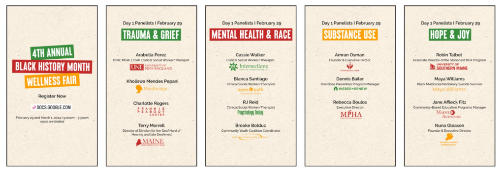 The “Black History Month Community Wellness Fair” consists of two 9 a.m.-3:15 p.m. events slated for Feb. 29 at Gateway Community Services in Portland, and March 1 at the Royal Oak Room in Lewiston.