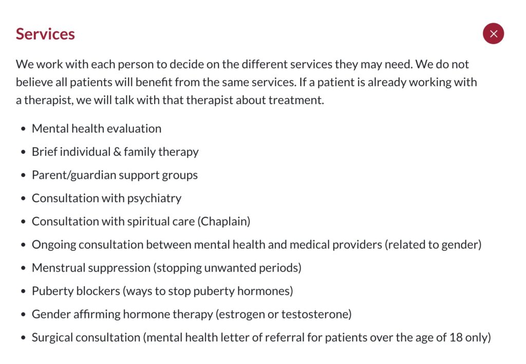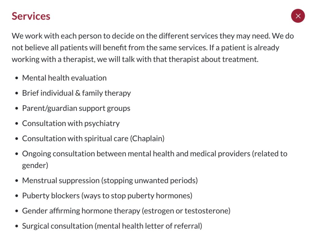 When we showed this individual the section of the The Barbara Bush Children’s Hospital’s Gender Clinic website which explicitly stated that the Maine Health hospital lists “gender-affirming surgical consultations” as among the services they provide, Maine Health changed their website. Below you can see the website as it appeared on Feb. 8, the date of our report, followed by the website as it appears now.