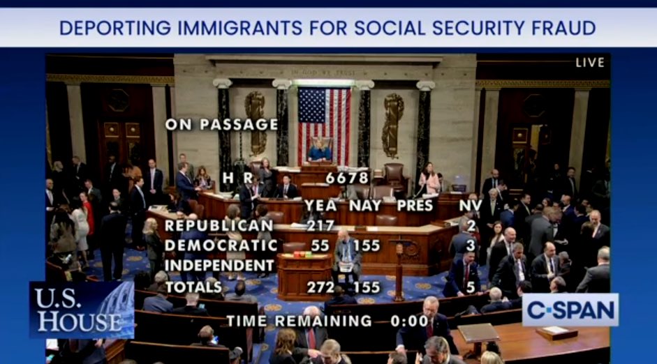 “155 HOUSE DEMOCRATS — 75% OF THEIR CONFERENCE — JUST VOTED AGAINST DEPORTING CRIMINAL MIGRANTS WHO COMMIT SOCIAL SECURITY FRAUD AND ROB OUR SENIORS. VOTE THEM ALL OUT!” said former Donald Trump advisor Stephen Miller on X.