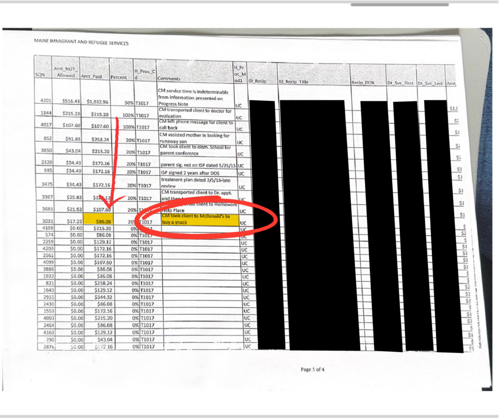 The audits show that MEIRS was charging MaineCare for various, non-eligible expenses, including more than $80 for bringing an immigrant to McDonalds for “a snack,” ferrying immigrants to and from doctor’s appointments, and driving one to a parent meeting at a school.
