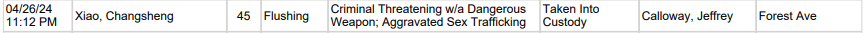 According to the Portland Police Department’s arrest log, 45-year-old Changsheng Xiao of Flushing, N.Y., was arrested shortly after 11 p.m. on Friday, April 26, on Forest Avenue in Portland.