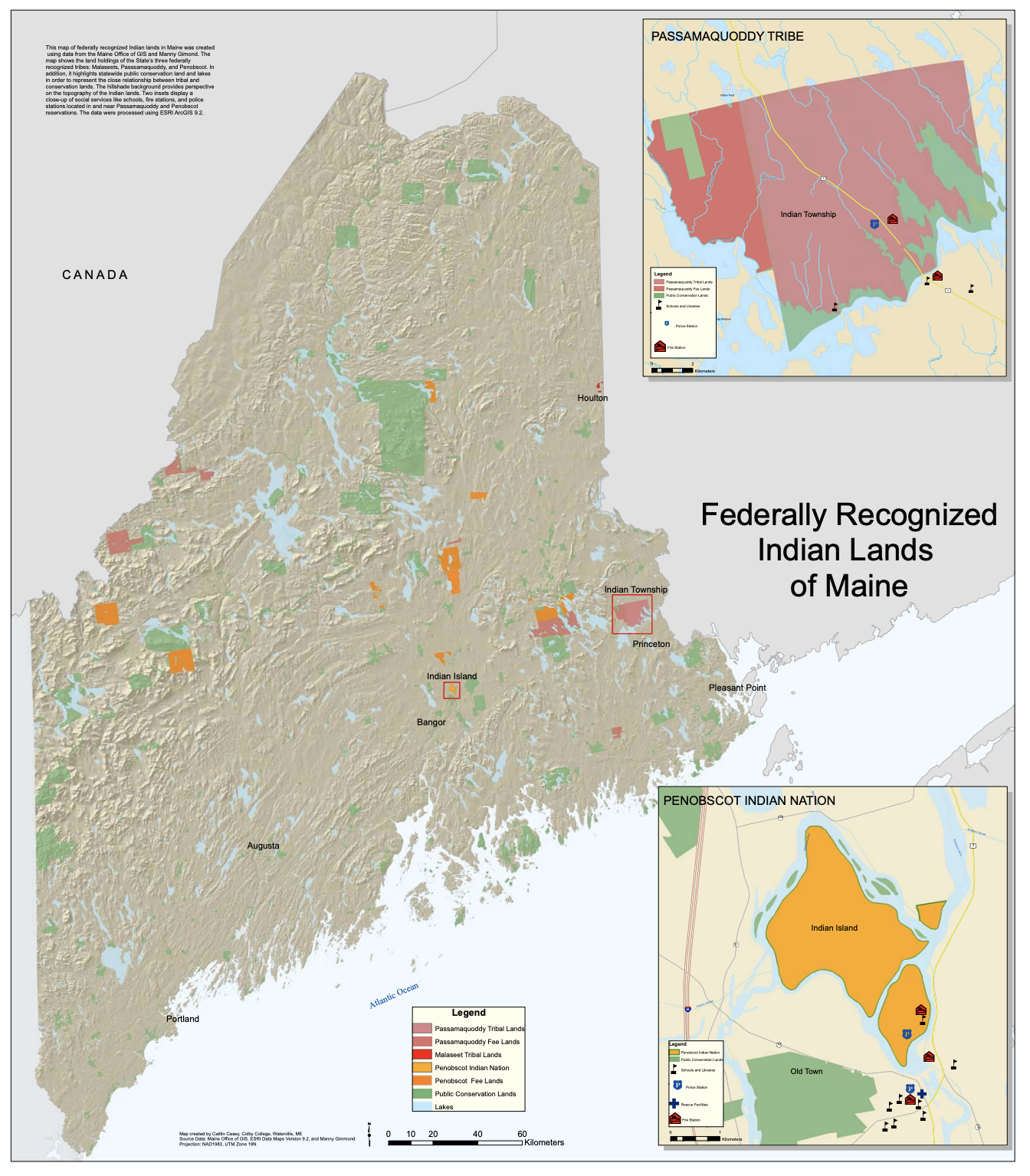 Maine has four tribal communities that are recognized by the federal government: the Houlton Band of Maliseet Indians, Mi’kmaq Nation, Penobscot Nation, and the Passamaquoddy Tribe. The Passamaquoddy Tribe includes the Passamaquoddy Tribe at Motahkomikuk (Indian Township Reservation) and the Passamaquoddy Tribe at Sipayik (Pleasant Point Reservation).