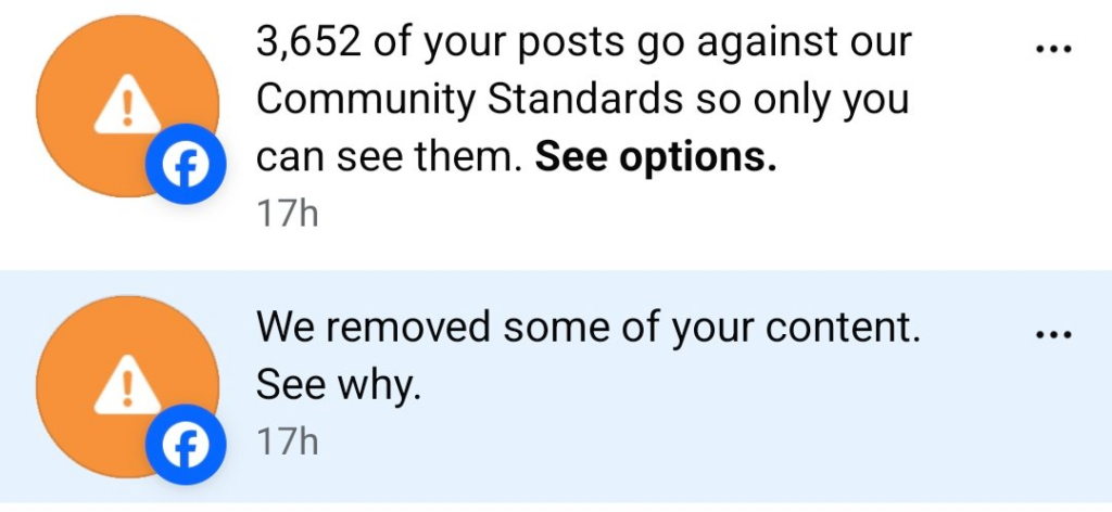 In messages to effected users, Facebook did not claim that the censorship campaign had any thing to do with politics, elections, or “fact checking.”
