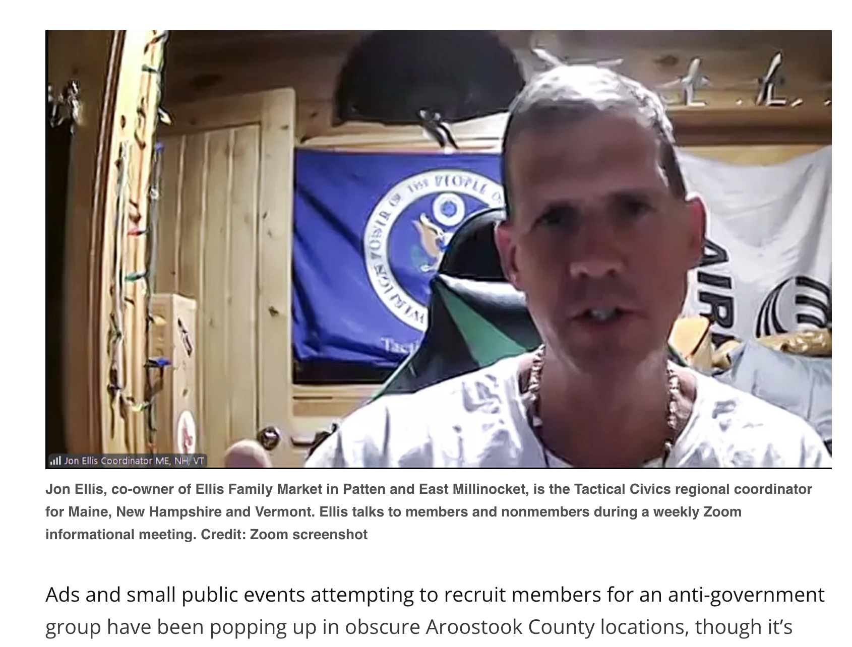 Tomaselli reveals in 12th paragraph of her story that a BDN reporter (presumably her) was on a Zoom call for a Tactical Civics meeting. Nowhere in the story does Tomaselli offer a quote about the content of the meeting, other than to say the participants discussed “their mission, God, the Constitution, and Trump.” Sounds extreme!!!