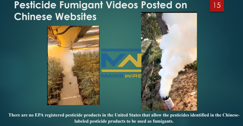 Currently, Maine law requires most cannabis growers to have their products tested for harmful concentrations of 59 pesticides, none of which are the five illegal chemicals present in the Chinese-labeled concoctions.
