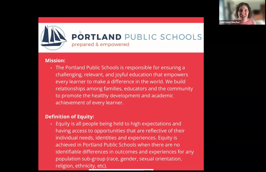 The Portland public schools are aiming to ensure that all students have equal outcomes and equal experiences, according to a revealing presentation delivered at a meeting of a Portland Board of Public Education committee on Thursday.
