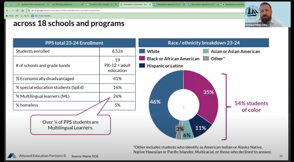 When outlining the proposed attendance boundaries committee, Portland Superintendent Ryan Scallon stated that the demographic disparities have led to “inequitable resource allocation across the district.”