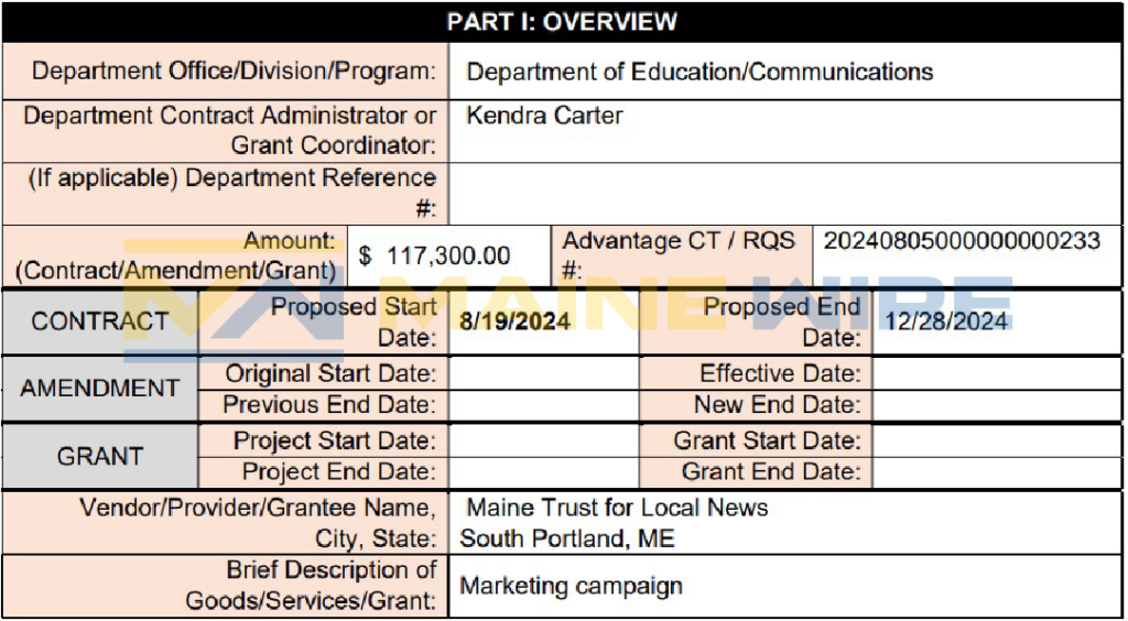“This campaign will utilize the authority of Maine Trust for Local News, which carries with the DOE’s constituents, to achieve these goals, resulting in an increase of goodwill for Maine’s public school system,” the Mills administration wrote in the procurement form.