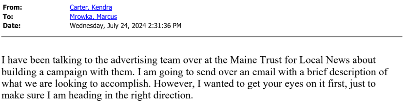 Now, emails obtained by the Maine Wire via the Freedom of Access Act (FOAA) shed new light on the process by which staff at the Maine DOE and Maine Trust for Local News entered what they described as a “partnership” to develop the marketing campaign and the details of their contract.