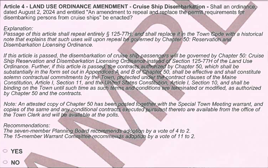Residents of Bar Harbor will be given the opportunity this November to overturn a 2022 ordinance capping the number of cruise ship passengers allowed to disembark per day at 1,000 and replace it with an updated set of rules that take a markedly different approach to cruise ship regulation.