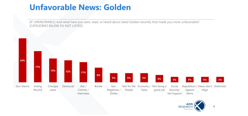 Unfavorable news about Golden has been dominated by his stance on guns, having been mentioned in response to an open-ended question by 24 percent of respondents.