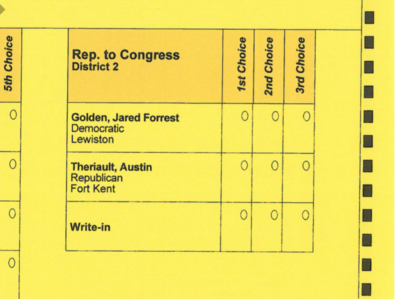 Under the usual RCV rules, all of the ballots in which Merenda — or any other write-in candidate — was selected as the first choice will now have their second choices added to either Golden or Theriault. Although Merenda was a self-described write-in candidate, her name did not appear on the ballot.