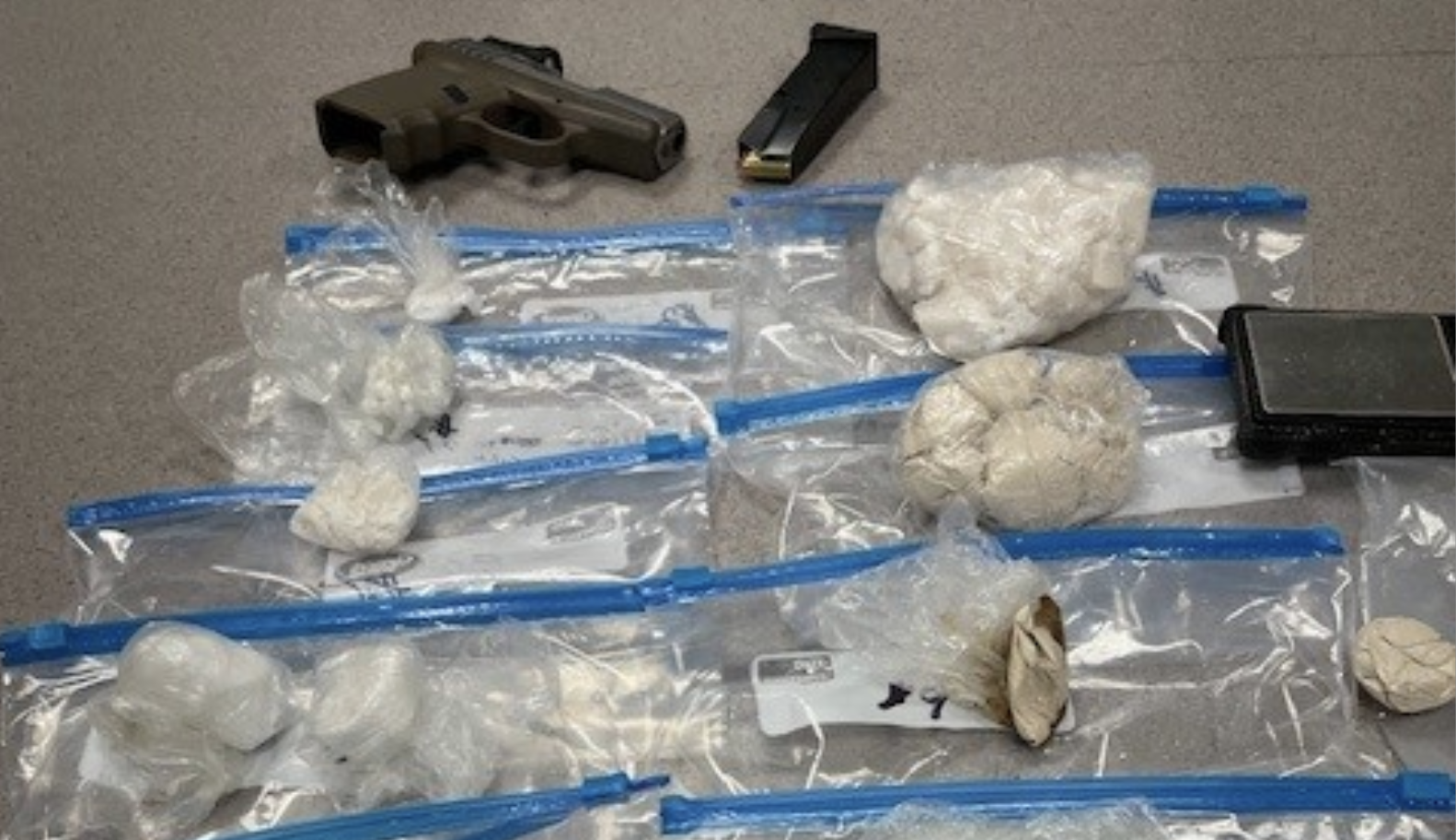 Devan Craig, 35, of Worcester, Mass., was arrested and charged with three counts of aggravated trafficking in scheduled drugs and possession of a firearm by a convicted felon. The drug charges are aggravated, due to the weight of the seized drugs, along with the presence of a firearm, Sheriff Lancaster said.