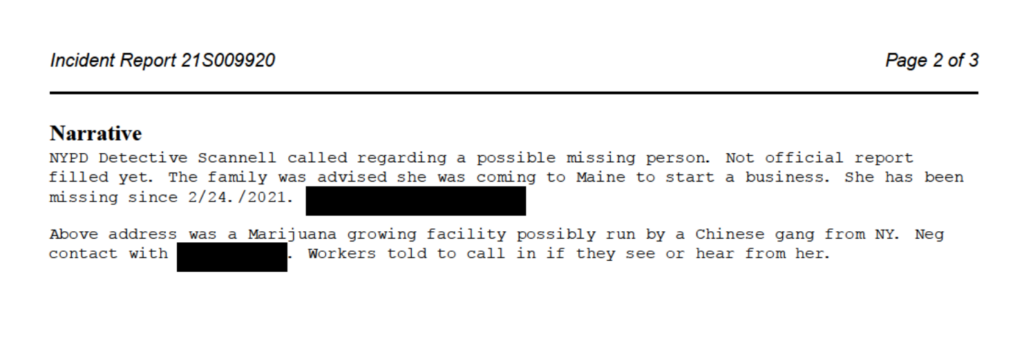Incident reports obtained by the Maine Wire indicate that police suspected in March 2021 that the location—at 57 Conant Road—was under the control of a “Chinese gang” from New York.
