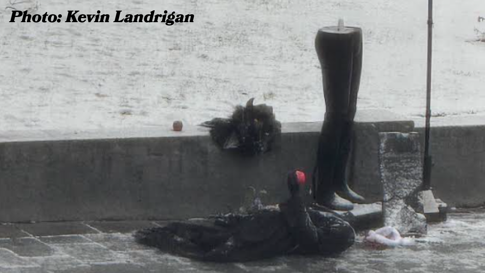 NH Rep. Ellen Read (D-Newmarket), who assisted the Satanic Temple in erecting the statue, reportedly tried to pick up the pieces after the statue was found destroyed.