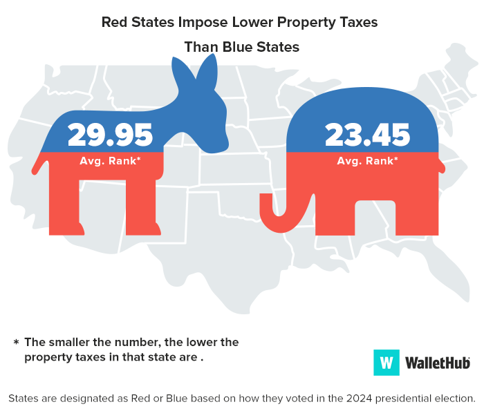 To determine which states were labeled as red and which as blue, WalletHub looked to the results of the 2024 presidential election.