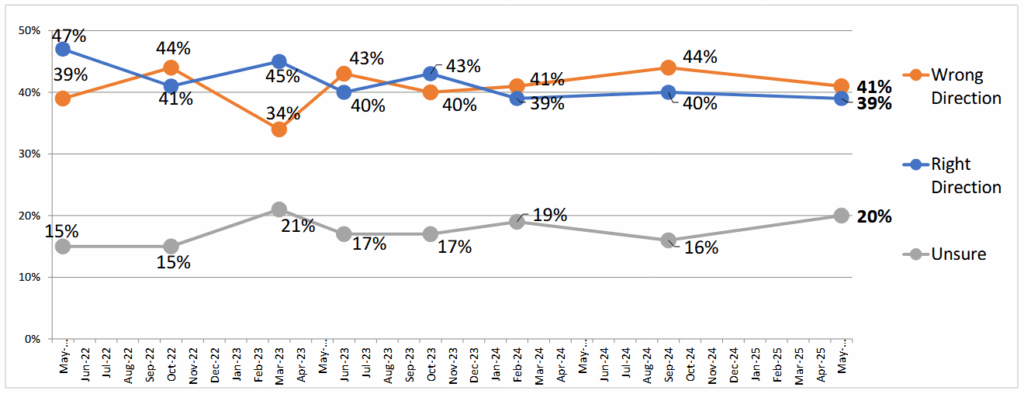 Mainers opinion on the state’s direction has been trending downward since May of 2022, decreasing from 47 percent to 39 percent overall.