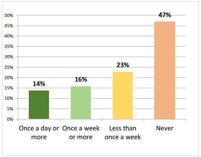 While about three out of ten Mainers reported using AI tools on a regular basis, 47 percent said that they never use AI.