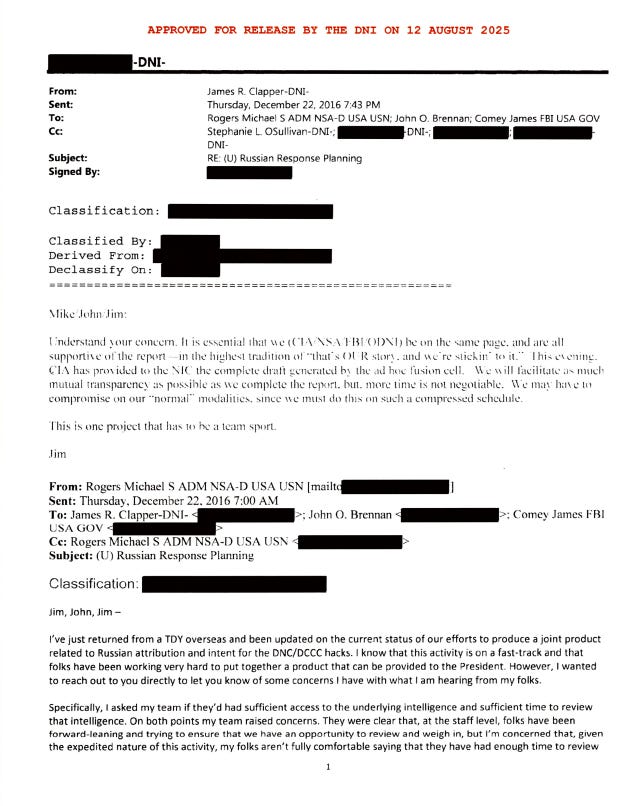 According to the records Gabbard released, Rogers was the only member of the Intel Community who expressed even mild resistance, though he would eventually come under the thumb.*