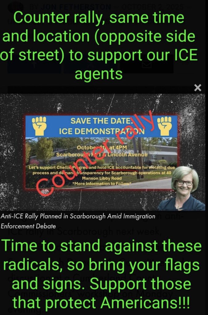 The anti-immigration enforcement rally is scheduled for 4 p.m. on Oct. 8 the intersection of U.S. Route 1 and Lincoln Avenue. Organizers of that event say their aim is to โhold ICE accountableโ and press for increased transparency at the Scarborough ICE facility. A flyer promoting the event linked attendance to supporting First District Congresswoman Chellie Pingree (D), who has in recently been strident in her criticism of ICE and it immigration enforcement work.