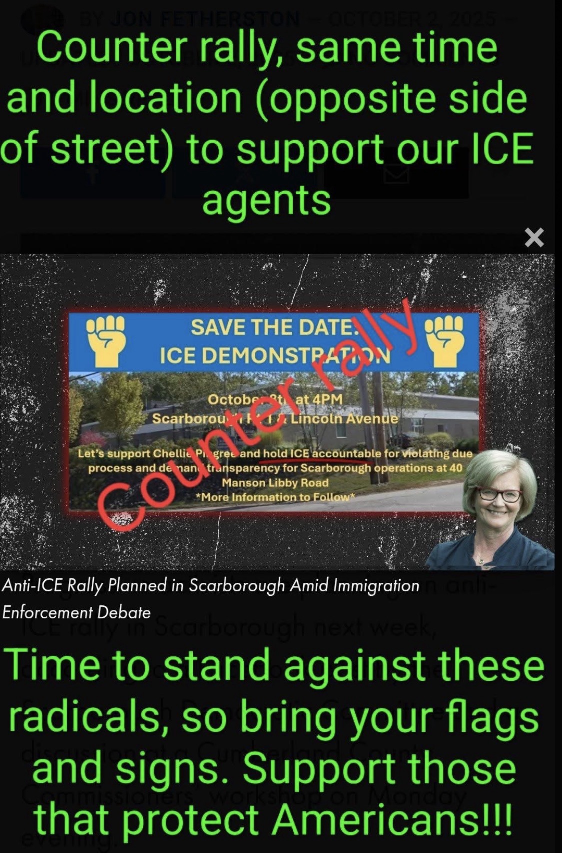 Trish Burnell, a U.S. Navy veteran and finance chair of the Denmark, Maine, Republican Town Committee, took to Facebook earlier this weekend to announce she would lead a pro-law enforcement gathering in response to the anti-ICE rally planned by the Scarborough Democratic Committee.