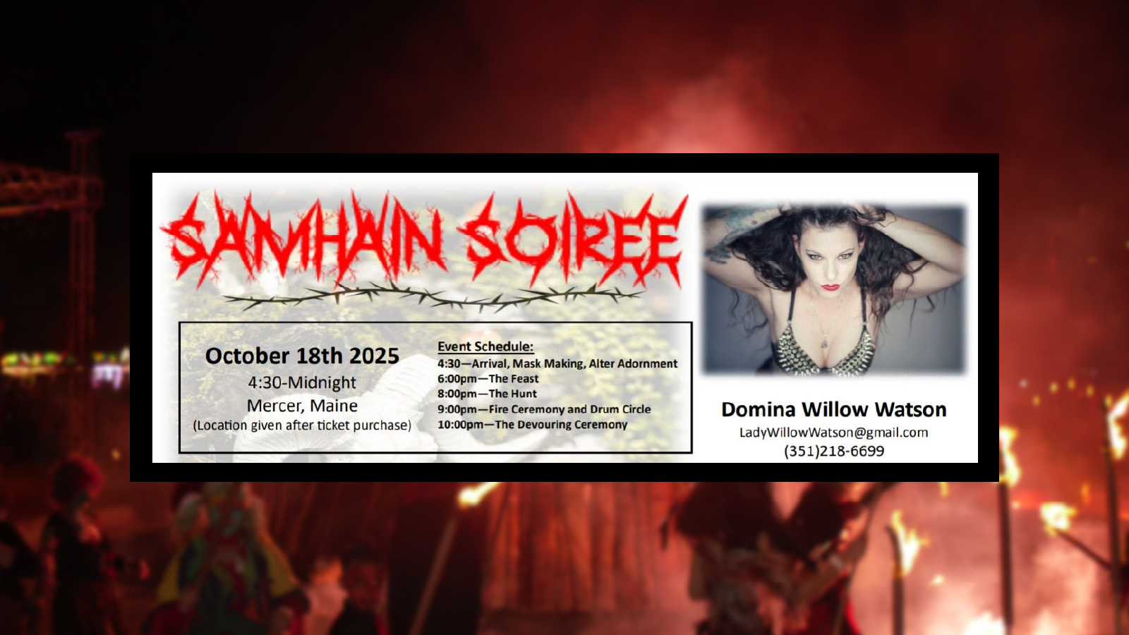 A group of Maine witches is hosting a “Samhain Soiree” pagan festival in Mercer featuring a “hands off ritual of terror and ceremony,” and a “devouring ceremony,” where “nude bodies lie as living altars.”