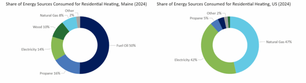 In Maine, natural gas and electricity only account for 16 percent and 14 percent respectively of the energy sources consumed in the state for residential heating.