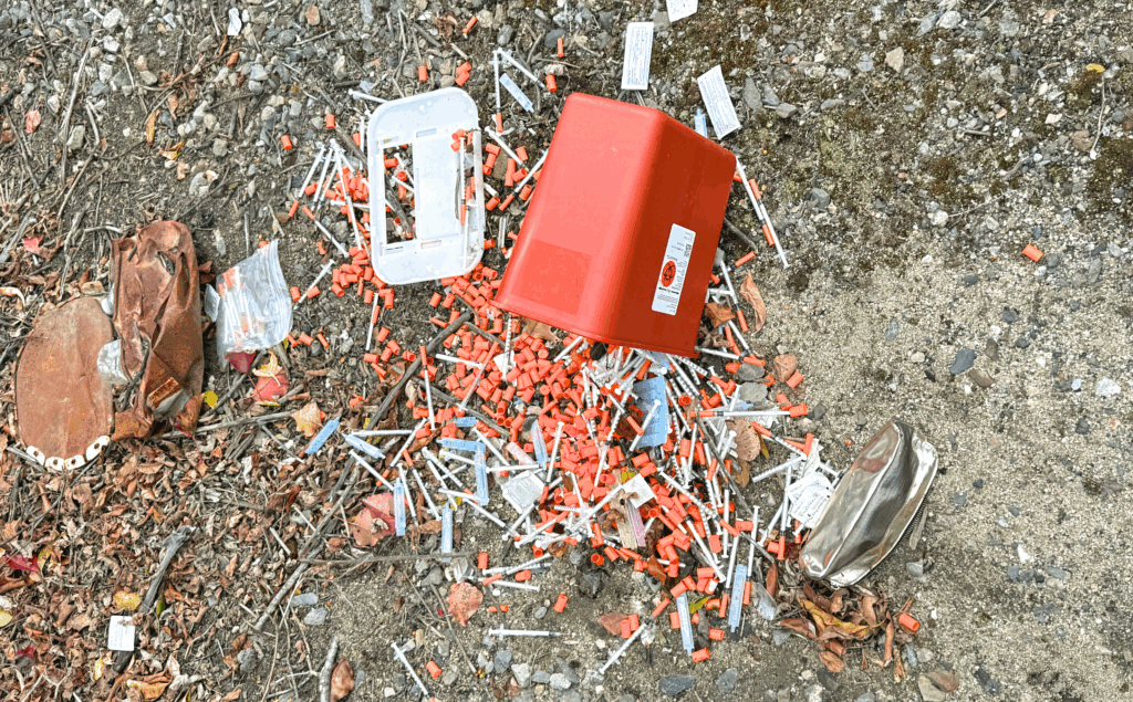 Participants in the program are able to obtain sterile supplies and are offered sharps disposal options, including containers and drop-off sites located in parts of the city. However, discarded needles have continued to draw concern from nearby residents, businesses, and property owners who report finding syringes in public spaces outside designated disposal areas.